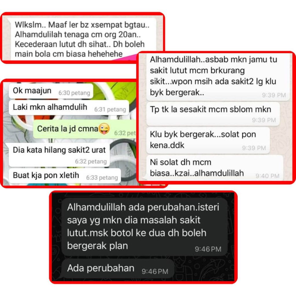 *PENAFIAN: Keberkesanan produk ini bergantung kepada kesesuaian individu. Setiap hasil dari penggunaan adalah berbeza bagi setiap individu. Produk ini akan memberi kesan terbaik sekiranya pengguna mengamalkan dengan cara betul berdasarkan banyak testimoni yang diperolehi. Kita berikhtiar, tuhan yang menyembuhkan.